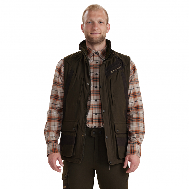 Die Deerhunter Muflon Extreme Weste ist eine besonders strapazierfähige Arbeits- und Jagdweste für intensive Einsätze im Revier. Das verstärkte Obermaterial ist windfest und wasserabweisend und hält auch bei rauen Bedingungen zuverlässig stand. Details aus Wildlederimitat sowie der robuste 2-Wege-YKK-Frontreißverschluss unterstreichen den funktionalen, hochwertigen Charakter der Weste.