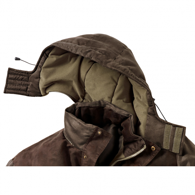 Warm gefütterte Jacke aus Mikrofaser-Gewebe mit farblich abgesetzten Schulterpartien und abnehmbarer, verstellbarer Kapuze. Zwei Balgtaschen, zwei Handwärmtaschen, Reißverschlusstasche und zwei Brusttaschen außen sowie eine Innentasche mit Reißverschluss bieten reichlich Platz. Dank des hochschließenden Kragens, der verstellbaren Bündchen und der mit Klett verschließbaren Kapuze eignet sich diese Jacke auch bei schlechter Witterung. Mit Taillen-Kordelzug für zusätzlichen Tragekomfort. Farbe: olivgrün.