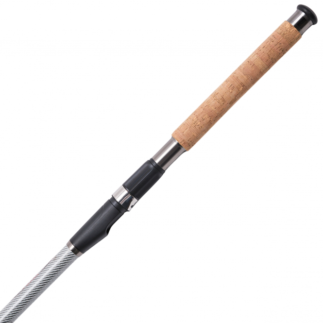Die stabile Doppelstegberingung unterstützt den Blank bei hoher Belastung und sorgt für eine saubere Schnurführung auch beim Werfen schwerer Gewichte. Der rutschfeste Korkgriff liegt angenehm in der Hand und bietet auch bei Nässe sicheren Halt, was langen Sessions zusätzlichen Komfort verleiht.