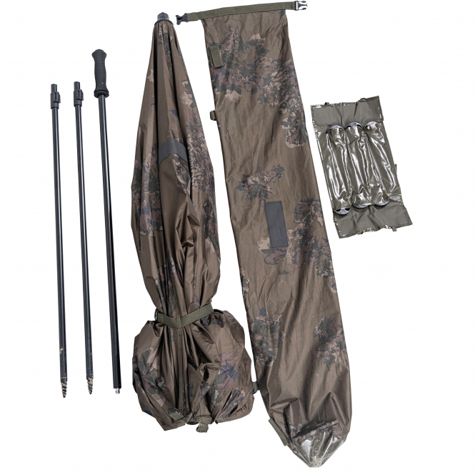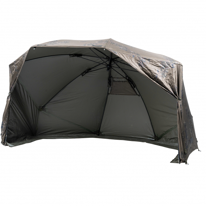 Robustes Brolly aus 10.000 mm Aquasense®-Material mit 8 mm Fiberglasstangen und verlängerten Storm Panels für maximalen Wetterschutz. Inklusive Moskitonetz-Front, zwei Cam-Lock-Storm Poles, Mittelstange mit EVA-Griff, Regenrinne, Innentasche und Klett-Rutenhaltern. Geliefert in einer wasserdichten Tragetasche. Robust, durchdacht und ideal für jede Angelsession. Maße: 240 x 150 x 125 cm. Packmaß: 120 x 15 cm. Gewicht: 5,5 kg.